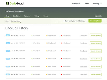 CodeGuard provides an independent offsite backup solution for your website along with daily monitoring to ensure your website is online and malware free.